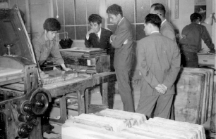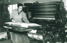 社員から大将と呼ばれ信頼されている2代目の小三郎は、他の印刷会社が、書籍や文字物など単色印刷物に取組む中、当時は大変高価な「石版印刷」を導入。この地方としては最新設備を持つ印刷専門会社としました。背景として日本は好景気の波に乗り、四日市は綿紡績などの繊維工業、製油、陶磁器工業などが栄え、商いの町から工業の町へ発展していました。貿易に頼る時代から国産品の生産普及の時代へと変化していったのです。
